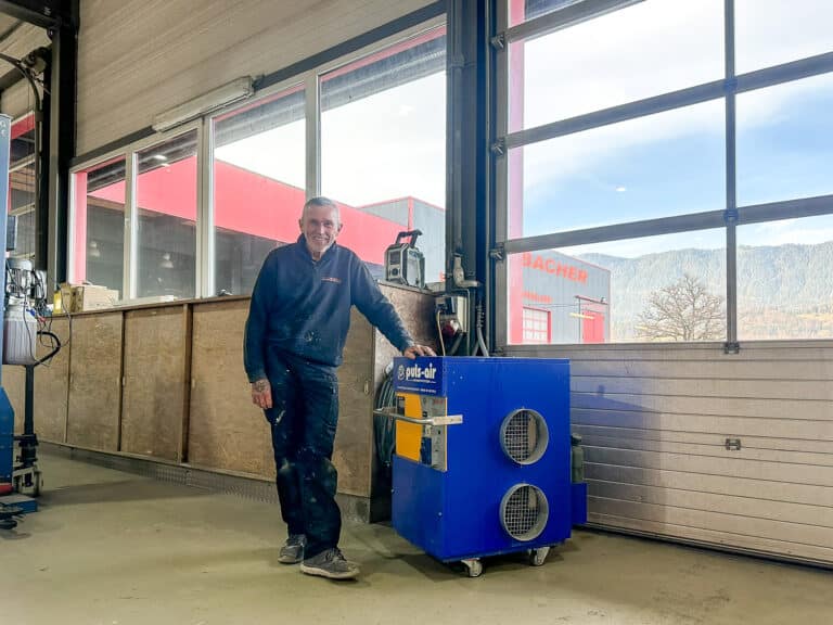 Positiv fallen GF Schinagl auch auf, dass das Laufgeräusch von Puls-air deutlich angenehmer ist und viel weniger Staub aufgewirbelt wird als bei den Deckengebläsen.