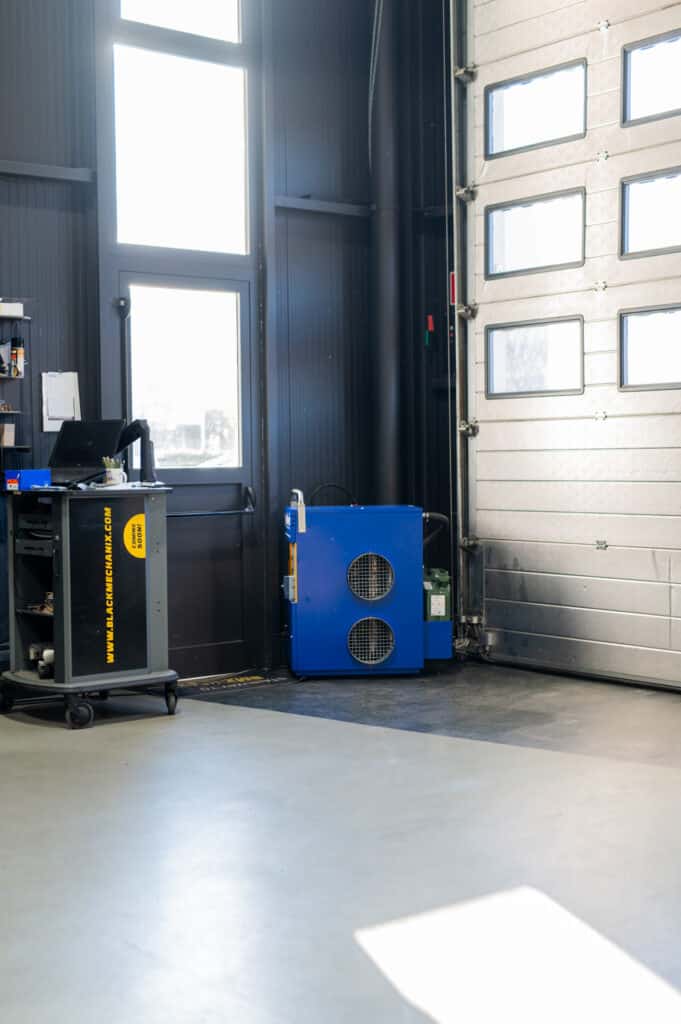 Eppan/Südtirol/Italien. Die Werkstatt der Blackmechanix ist anders – schwarz glänzend mit Lounge, Espresso, Gin & Rennsimulator. Ein anderer Weg wird seit 2024 auch bei der Beheizung der edlen Werkstatt eingeschlagen. Puls-air eine heizölbetriebene Werkstattheizung mit patentierter Verbrennungstechnik bringt angenehme Wärme bei geringsten Heizkosten.